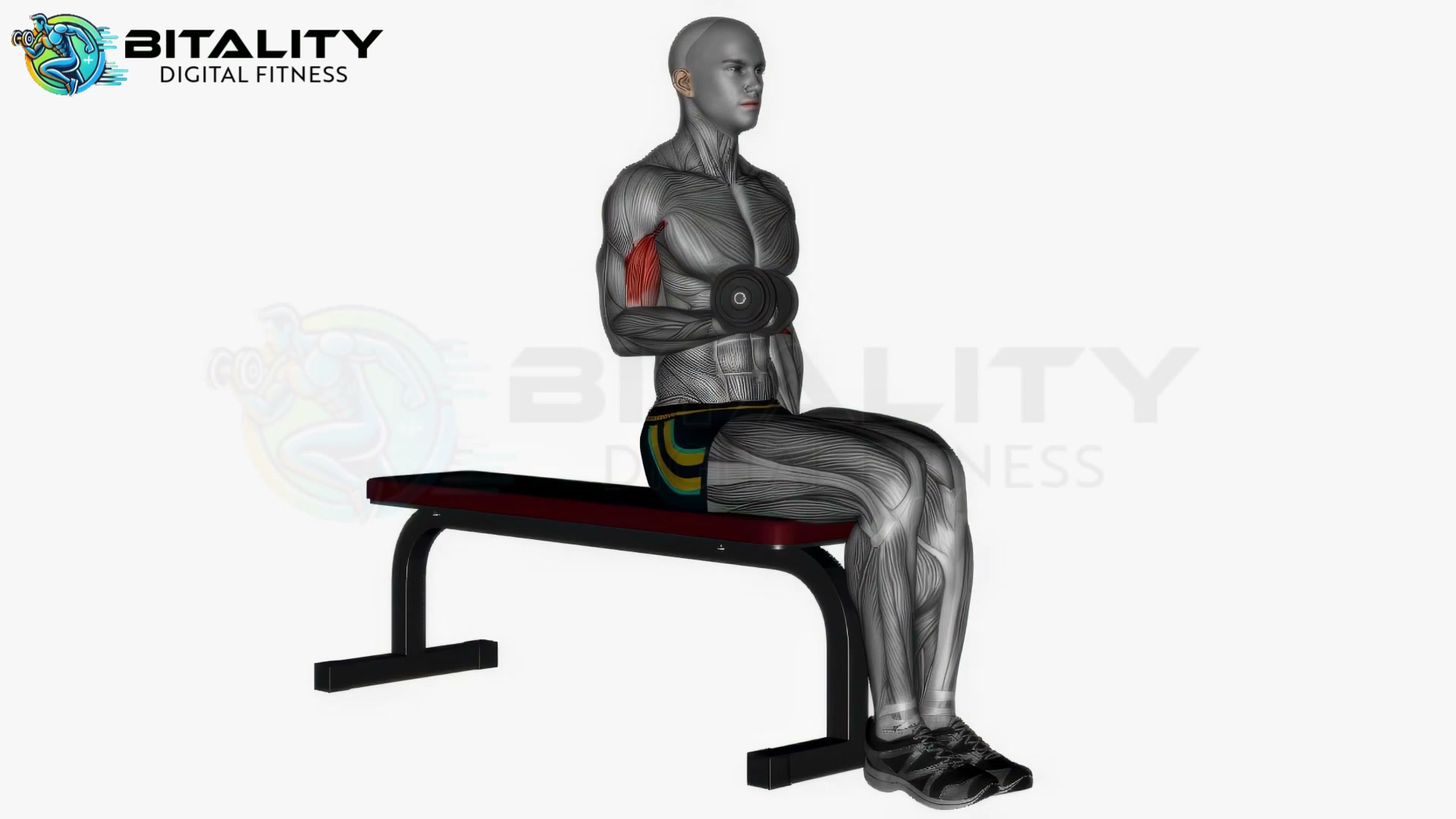 Alternating biceps curl seated dumbbells